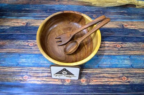 Egypt Antiques - طبق وملعقة وشوكة خشبية صحية مصنوعة يدويًا بالكامل من ايجيبت انتكس
