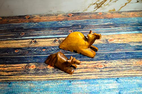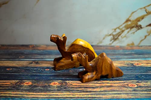 Egypt Antiques - تمثال للأطفال على شكل جملين للعب أو الديكور منحوت ومصنوع يدويا من خشب طبيعي بألوان طبيعية وصحية 100% من قلب الشجرة من ايجيبت انتيكيكس
