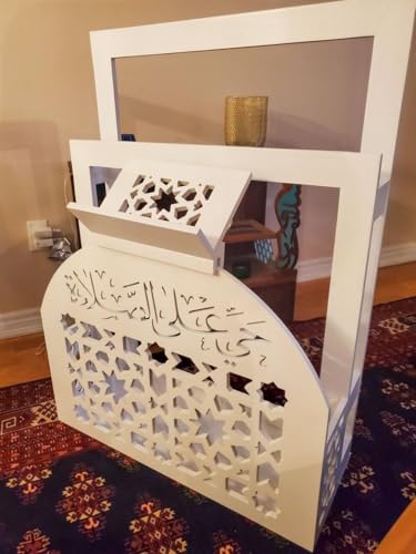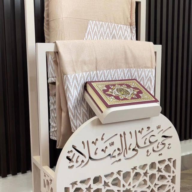 - تخزين مزدوج: حامل مصمم خصيصًا يتميز بأقسام لكل من سجادة الصلاة والقرآن، مما يحافظ على العناصر الدينية منظمة بدقة.