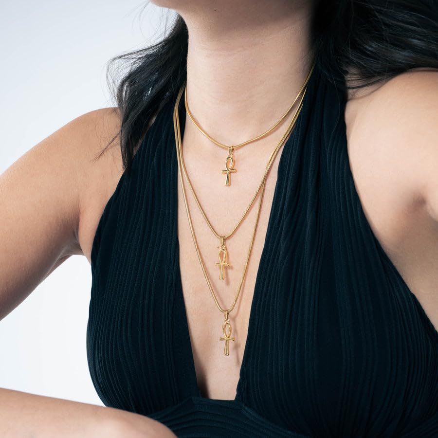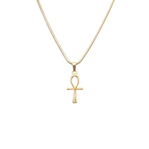Generic - سلسلة بدلاية على شكل صليب عنخ مصري مطلية باللون الذهبي مع سلك على شكل ثعبان