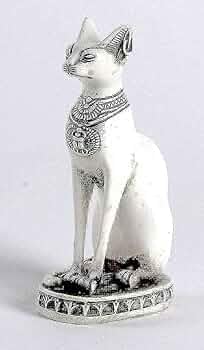 Generic - تمثال إلهة القط المصري القابل للتجميع مصنوع من الحجر والرسلان والريزن - صنع في مصر (أبيض, (متوسط الطول 5.4 انش))