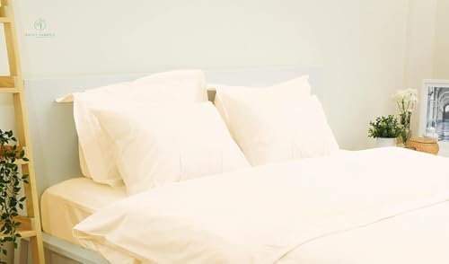 Generic - غطاء كيس لحاف مصنوع من القطن المصري - مقاس 260x220 - يحتوي علي 2 كيس مخدة مقاس 70x50 (كريمي)