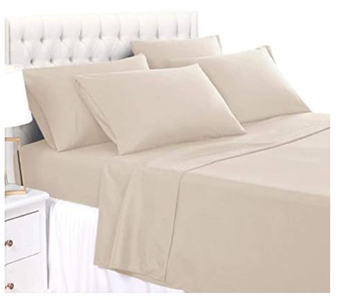 Other - طقم ملاية قطن مصرى - موحد اللون، سادة، كوين، بيج