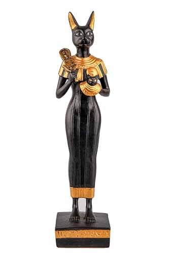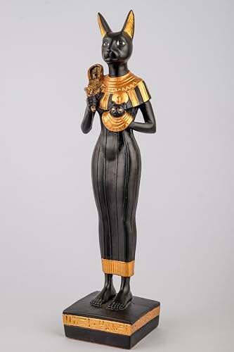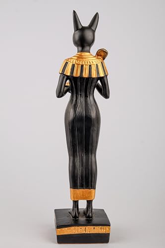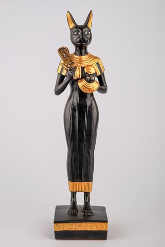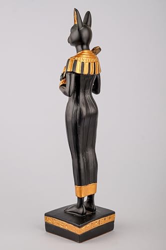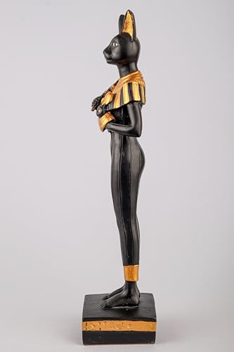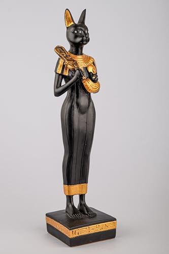 Generic - إلهة مصرية قطة باستيت كبيرة واقفة فرحة الحب الموسيقى الملكية عنخ مطلية باليد باللونين الذهبي والأسود صنع في مصر