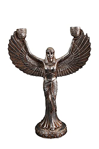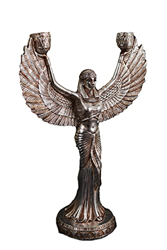 Generic - حامل شموع ايزيس باجنحة مفتوحة مع تمثال مطلي يدويا على شكل اوراق ذهبية