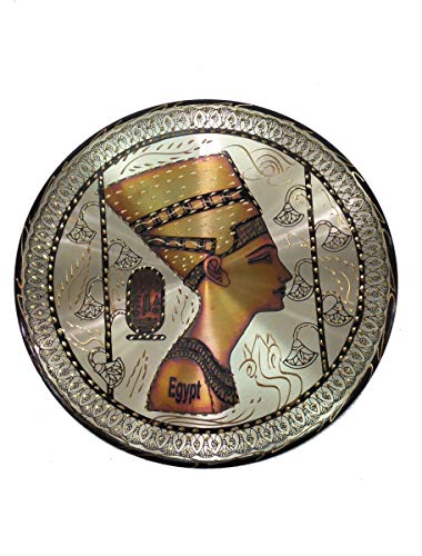 Other - طبق فرعوني صناعة يدوية من النحاس محفور عليه نفرتيتي قطر الدائرة 30سم، ذهبي، عدد القطع: 1