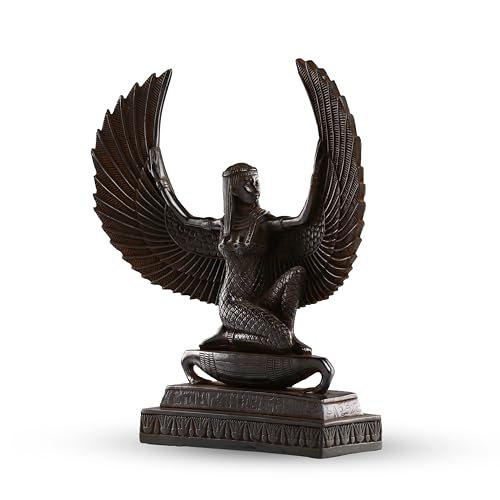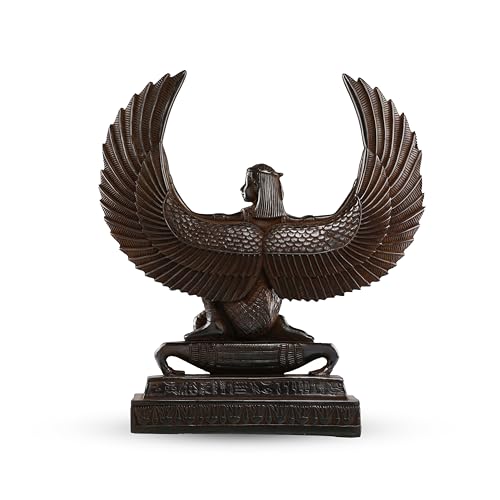 Generic - تمثال مصري كبير للإلهة إيزيس إلهة الخصوبة والأمومة والسحر والموت والشفاء والبعث بجناحين، مصنوع من حجر الأسود الثقيل، صنع في مصر