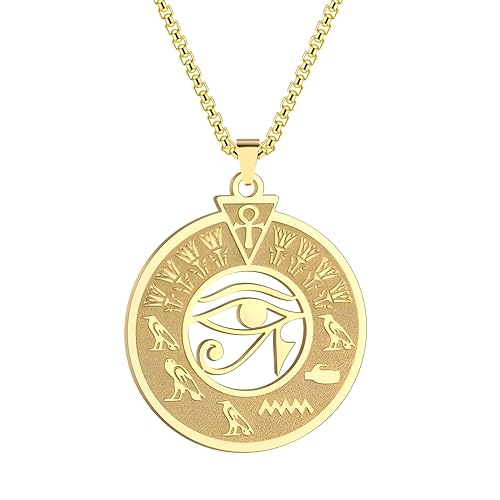 Generic - قلادة مصرية - قلادة عين حورس من الستانلس ستيل للرجال مع منحوتات هيروغليفية معقدة، تعكس الرمزية القديمة وتعزز الأناقة مع بيان ثقافي جريء للقوة الخالدة