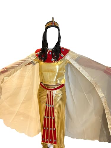 Generic - زي فرعون مصري، ذهبي واحمر، مع رداء وغطاء للرأس وشعر مستعار وحزام، فستان فاخر للبالغين
