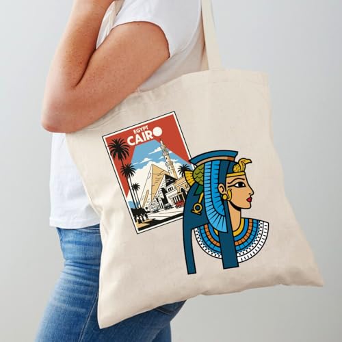 Generic - شنطة توت قماشية فرعونية مصرية 40×40 سم - شنطة تسوق متينة قابلة لاعادة الاستخدام | تصميم مصر القديمة، شنطة مصنوعة يدويا من القطن الصديق للبيئة