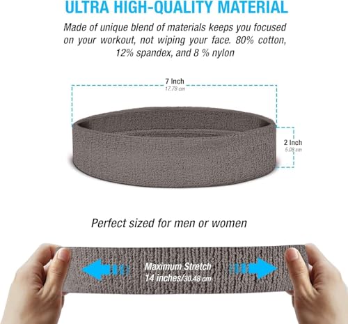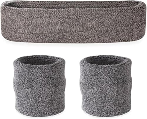 Generic - مجموعة عصابة رأس/سوار معصم - عصابات رياضية للرأس والمعصم، قطن، رمادي // من ايجي وولف