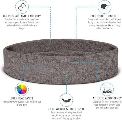 - مجموعة عصابة رأس/سوار معصم - عصابات رياضية للرأس والمعصم، قطن، رمادي من ايجي وولف