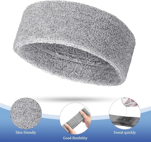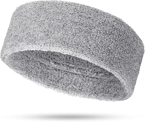 Generic - عصابة راس رياضية مطاطية ممتصة للرطوبة من قماش تيري الرياضي الممتص للعرق، للكبار من الجنسين، لون رمادي // من ايجي وولف