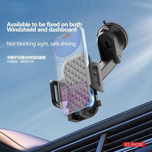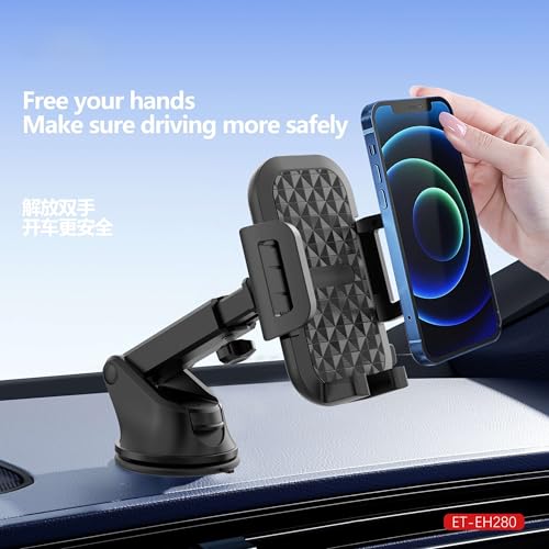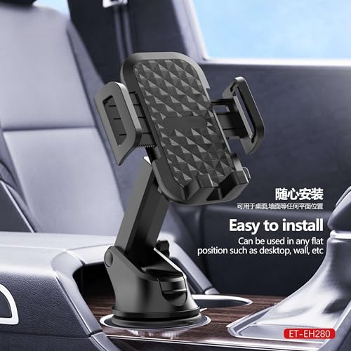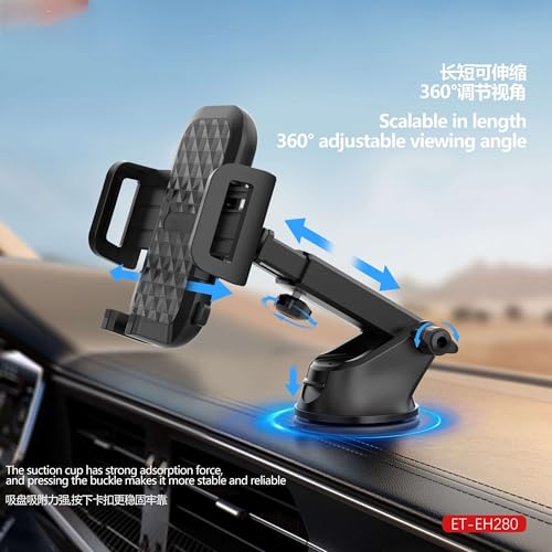 Generic - حامل هاتف للسيارة EH280 – دوران 360 درجة – تثبيت قوي- ذراع تلسكوبي قابل للتعديل – لون أسود