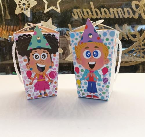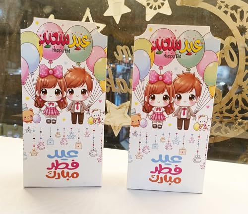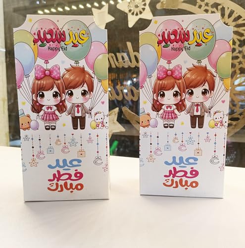 Generic - صناديق هدايا العيد للاطفال - صناديق هدايا الحفلات الكرتونية لاموال العيدية والحلوى والبالونات والهدايا الصغيرة، صناديق توزيع لطيفة للعيد للاطفال، تغليف حلوى للعطلات والحفلات (عبوة واحدة (قطعتان)