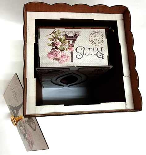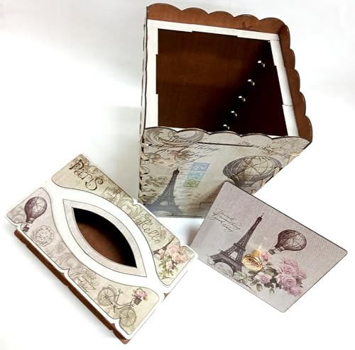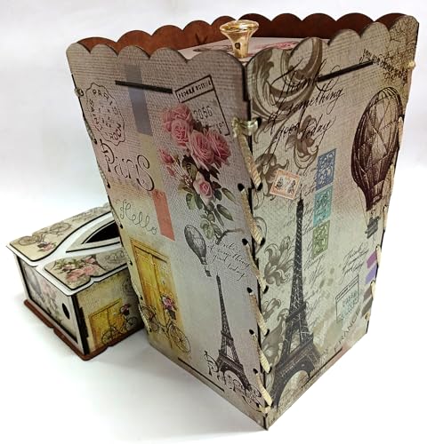 Generic - سلة مهملات وعلبة مناديل لون بني وبيج كافيه طقم مصنوع من الخشب مجموعة ديكور منزلي ومكتب باريس وبرج ايفل