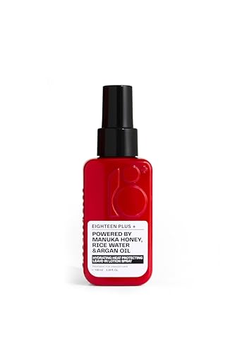 Eighteen Plus 18+ - بخاخ لوشن مرطب وواقي من الحرارة يترك على الشعر من ايتين بلس 18+، غني بعسل مانوكا وماء الأرز وزيت الأرجان، 100 مل