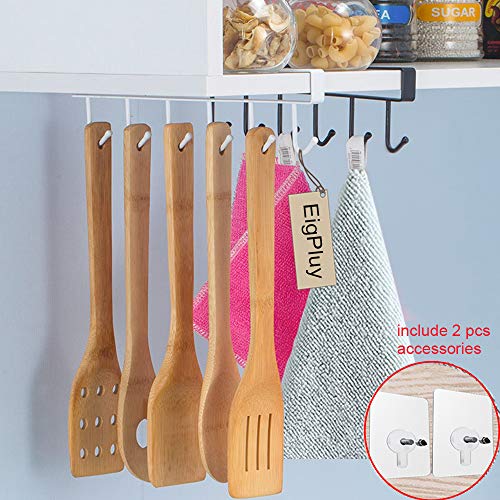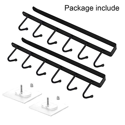 EigPluy - حامل أكواب مزود بـ 6 خطافات للتثبيت أسفل رف الدولاب بدون مسامير لتعليق أكواب القهوة وأدوات المطبخ أو الكرافتات أو الأحزمة أو سكارفات من ايج بلاي، لون أسود، قطعتان