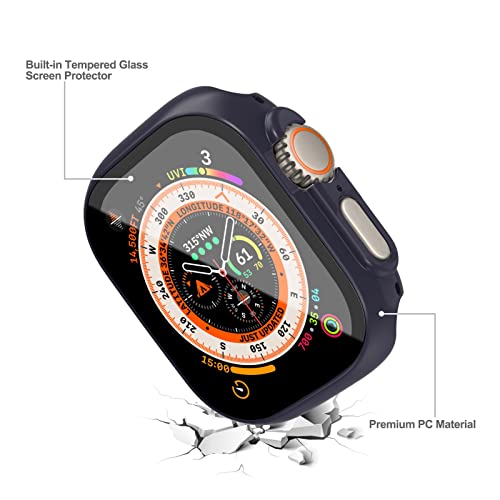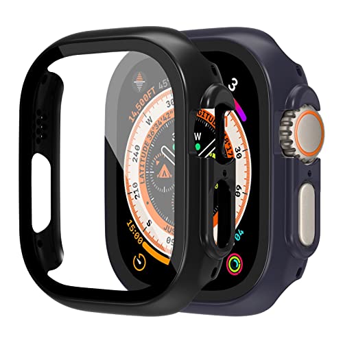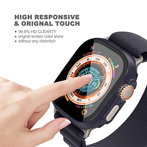 EIHAIHIS - جراب صلب مقاوم للماء من البولي كربونات متوافق مع ساعة ابل الترا 49 ملم ايهايهيس واقي شاشة مدمج الزجاج المقسى غطاء حماية كامل HD ممتص للصدمات لساعة اي ووتش اسود - ازرق ميدنايت