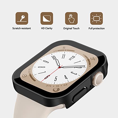 EIHAIHIS - جراب حماية صلب مقاوم للماء من البولي كربونات ايهايهيس متوافق مع ساعة ابل 45ملم شاشة مدمجة الزجاج المقوى كاملHDعالي الدقة ممتص للصدمات لسلسلة ساعات آي ووتش 8 7 أسود مطفي 41 ملم