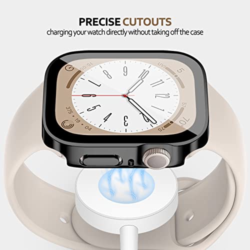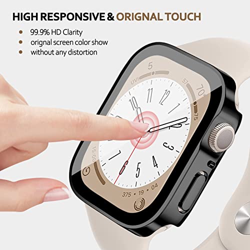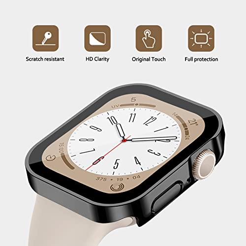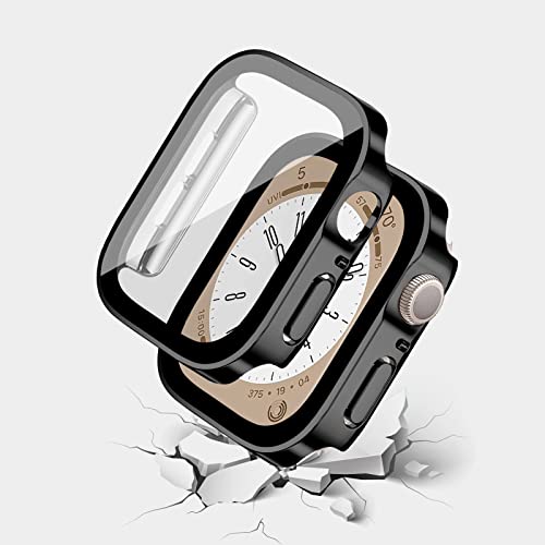 EIHAIHIS - جراب حماية كامل صلب مقاوم للماء وممتص للصدمات من البولي كربونات، بشاشة حماية عالية الدقة HD مدمجة من الزجاج المقوى، متوافق مع ساعة آبل 44 ملم سلسلة 6 5 4 SE من ايهايهيس، أسود 44 ملم