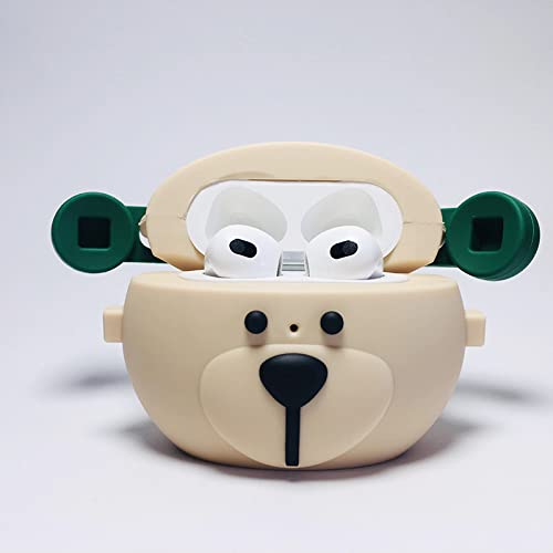 EJOSHELL - جراب سماعة رأس سيليكون ثلاثي الأبعاد بتصميم دب متوافق مع سماعات ايربودز 3 2021 الجيل الثالث، غطاء لطيف ومضحك للبنات والأولاد من ايجوشيل