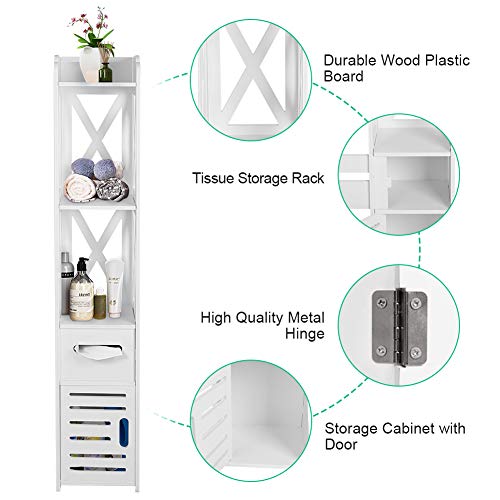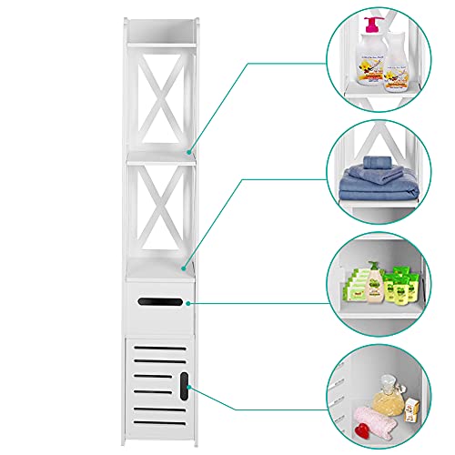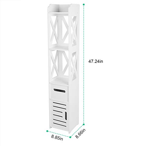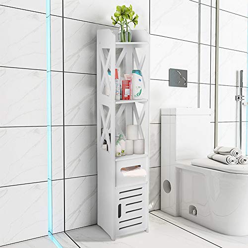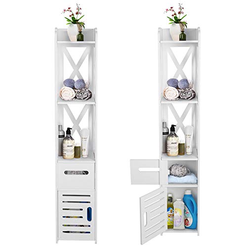 Ejoyous - دولاب تخزين لزاوية الحمام من يجويوس أرضية خشبي عصري طويل وضيق رف منظم مع باب ورف مفتوح للمنزل وغرفة المعيشة النوم خشب بلاستيك