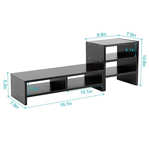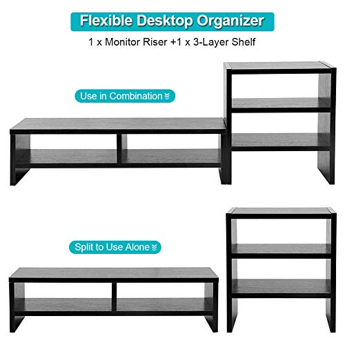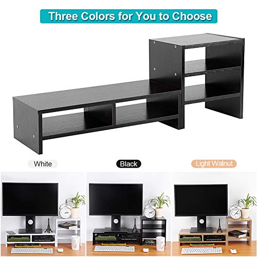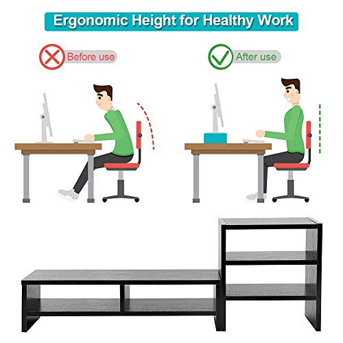Ejoyous - يجويوس حامل شاشة خشبي للمكتب رف رافع عصري متعدد الوظائف منظم ارفف مكتب مع تخزين من 3 طبقات للمنزل والمكتب خشب الجوز الاسود -1