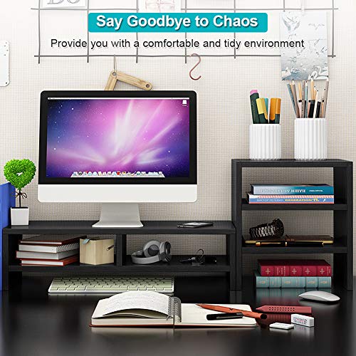 - [حافظ على الأناقة والاستخدام الواسع]: يحافظ حامل الشاشة على سطح المكتب مرتبًا وأنيقًا، رائع للاستخدام في المنزل أو المكتب؛ يدعم منظم الرف المكتبي لأجهزة تلفزيون LCD وأجهزة الكمبيوتر والنوت بوك والطابعات واللابتوب؛ شحن سريع من الولايات المتحدة