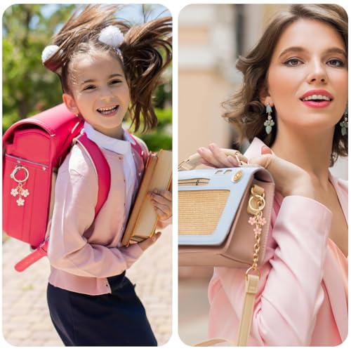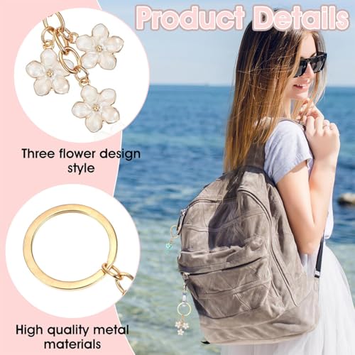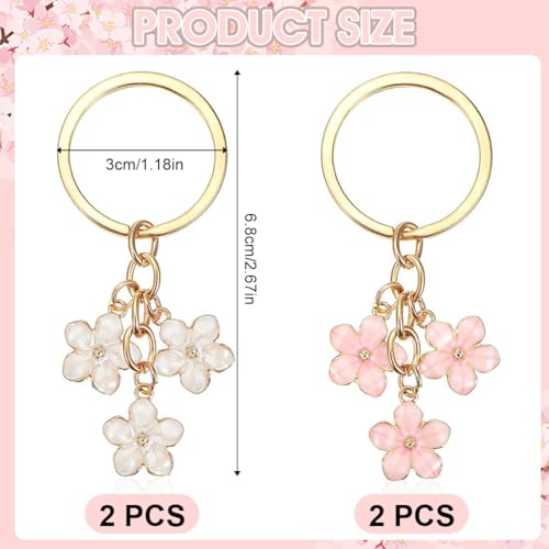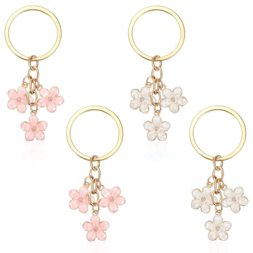 EJRUP - 4 سلاسل مفاتيح على شكل زهرة من ايجروب، حلقات مفاتيح، مطلية بالزمك، سلسلة مفاتيح للنساء، سلسلة مفاتيح ساحرة على شكل زهرة ملونة، زينة عيد الام (زهري، ابيض)
