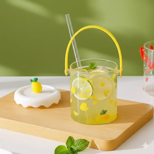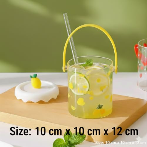 - كوب عصير زجاجي بمقبض يوفر طريقة أنيقة ومريحة للاستمتاع بالعصير أو الماء أو الشاي المثلج.