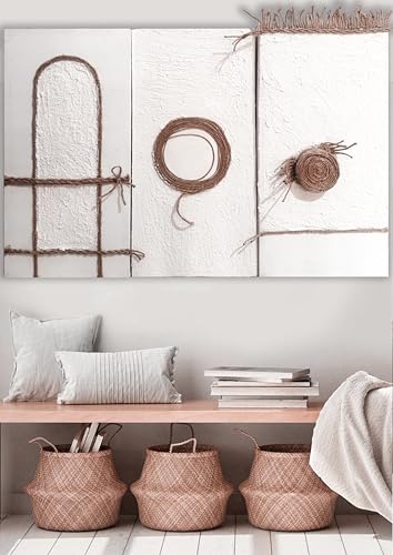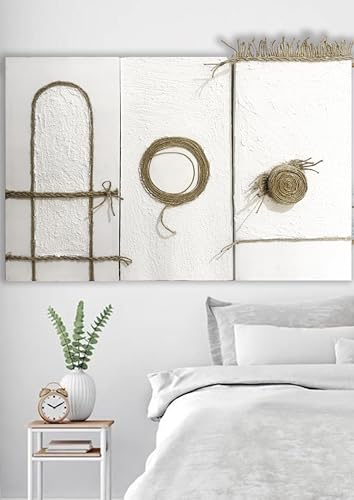 Generic - تصميمات إي كيه، ديكور حائط بخيوط بوهو، ديكور غرفة المعيشة، تابلوه فني للحائط محكم مصنوع يدويًا من 3 قطع، مقاس إجمالي 60×90 سم، بيج وأبيض