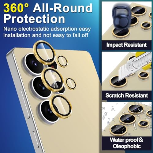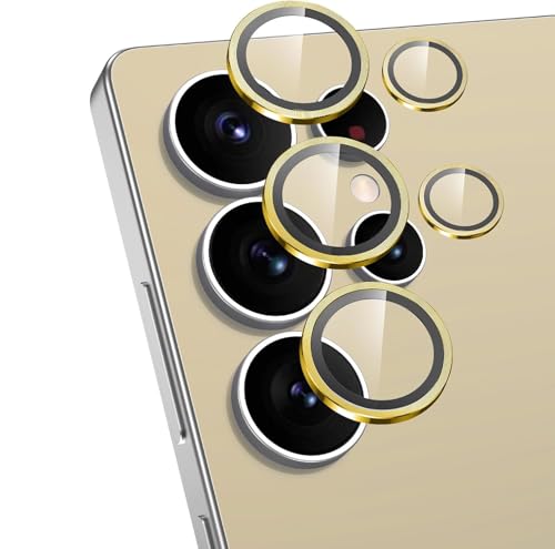 EKAM - واقي عدسة الكاميرا فردي، غطاء حلقي من الزجاج المقوى بدرجة صلابة 9H وخليط الألومنيوم، وضوح عالي الدقة HD وخالي من الفقاعات، لموبايل سامسونج جالاكسي S25 الترا 6.9 بوصة من ايكام (ذهبي)