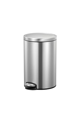 EKO - سلة مهملات دائرية من الفولاذ المقاوم للصدأ بغطاء إغلاق ناعم من ايكو، سعة 12 لتر، رمادي تيتانيوم