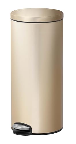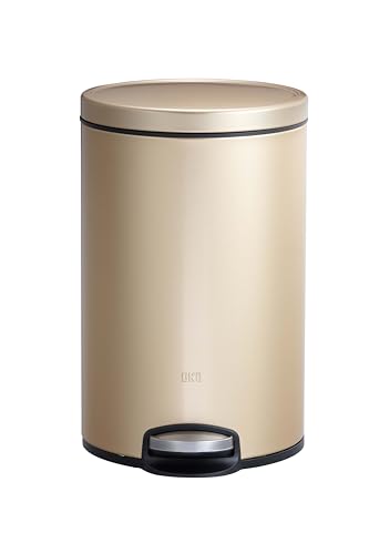 EKO - سلة مهملات دائرية من الستانلس ستيل بغطاء إغلاق سلس إيكو سعة 20 لتر ذهبي فاتح اي كيه او