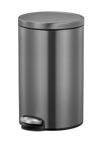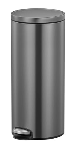 EKO - سلة مهملات دائرية من الستانلس ستيل بغطاء إغلاق ناعم من ايكو، سعة 20 لتر، رمادي تيتانيوم، الضغط بالقدم