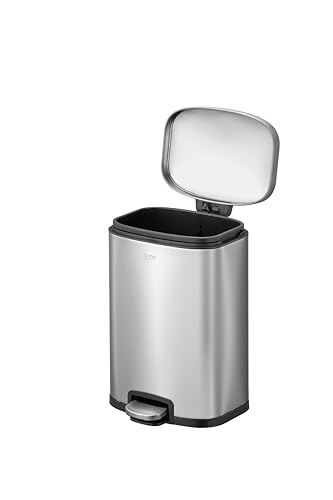 EKO - سلة مهملات من الفولاذ المقاوم للصدأ بدواسة وتصميم مصقول مقاوم لبصمات الأصابع بتصميم مكعب سعة 30 لتر ايكو لون فضي