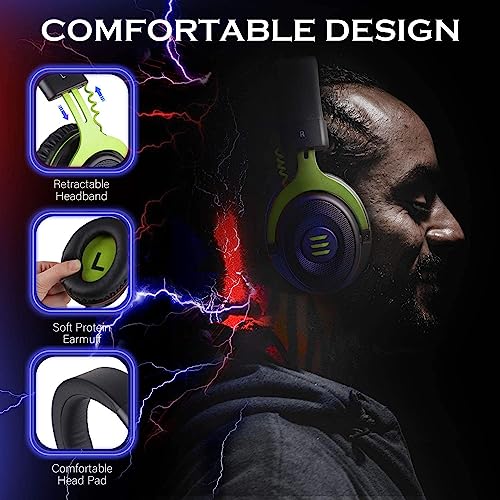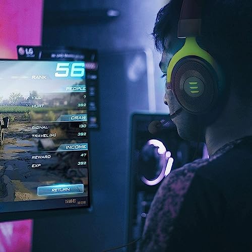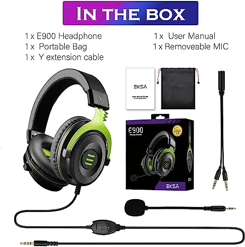 EKSA - سماعة ألعاب E900 للكمبيوتر - رأس مع ميكروفون قابل للفصل بخاصية إلغاء الضوضاء صوت محيطي 7.1 مكبر داخلي 50 ملم للرأس من ايكسا سلكي فوق الأذن أخضر