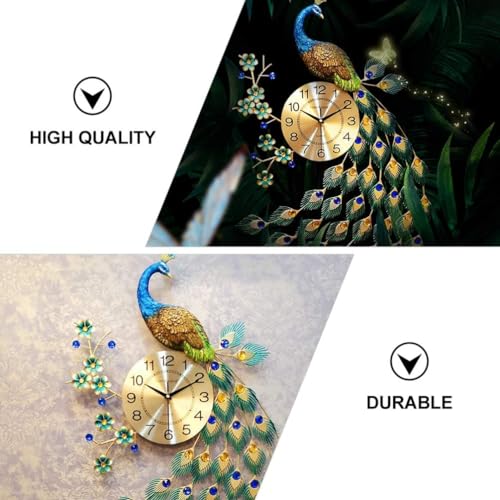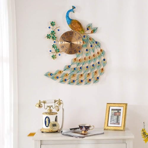 EKYLIP - ساعة حائط عصرية ثلاثية الابعاد على شكل طاووس من ايكيليب، ساعات حائط عصرية لديكور غرفة المعيشة، ساعة حائط بتصميم طاووس لغرفة المعيشة والمنزل الاوروبي، جو هادئ، معدن، متعدد الألوان، تناظري