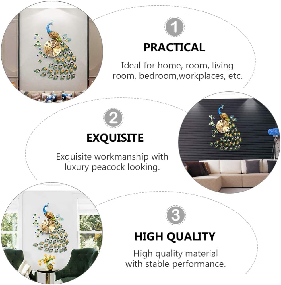 - ★سهلة التعليق - قم بتركيب رأس الطاووس بمسامير (يرجى مشاهدة الفيديو قبل التركيب) يوجد خطاف على الجزء الخلفي من ساعة الحائط لسهولة التعليق على الحائط الفارغ.