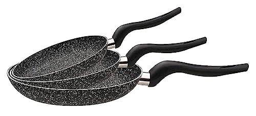 el amal elite - طقم صواني جرانيت صحي غير لاصق من 3 قطع من الامل ايليت، 18 سم / 22 سم / 26 سم، امنة للاستخدام في غسالة الاطباق، طلاء خالي من حمض بيرفلورو الاوكتانويك PFOA ومقبض بيكلايت (ملمس ناعم)، 4 ملم، اسود