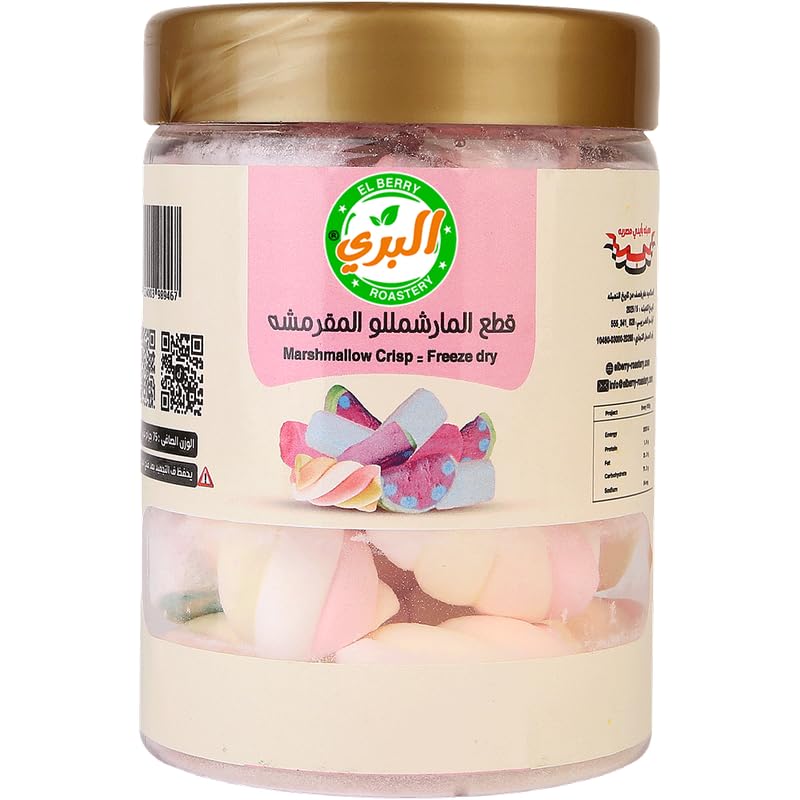 EL BERRY - قطع مارشميلو مقرمشة مجففة بالتجميد من ال بيري، حلوى خفيفة مقرمشة مجففة، زينة مثالية للشوكولاتة الساخنة، إضافة لحبوب الإفطار أو زينة خبز ممتعة لجميع الأعمار، برطمان قابل للغلق، 75 جم