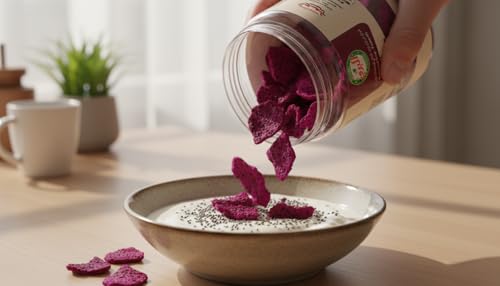 - فاكهة التنين المجففة المجمدة بنسبة 100%: يحافظ على المذاق الحلو الرائع لهذا المنتج الغريب، مما يصنع وجبة خفيفة ومتجددة ومقرمشة بصرياً.