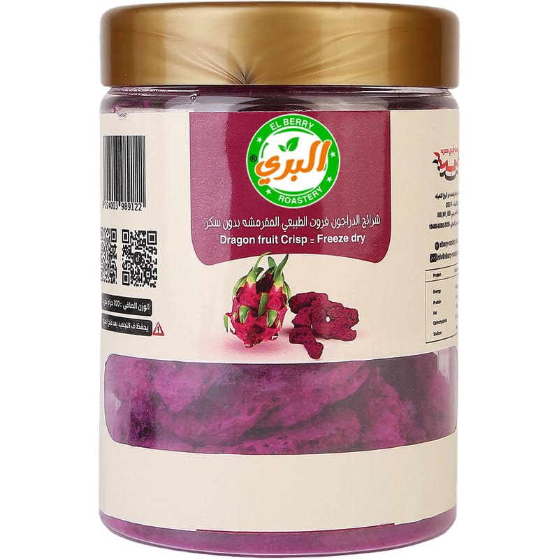EL BERRY - شرائح الدراجون فروت المجففة بالتجميد من البري، شرائح فاكهة التنين مقرمشة طبيعية 100%، بدون سكر مضاف، وجبة خفيفة نباتية صحية، رائعة للعصائر والبولات والحبوب، برطمان قابل لإعادة الإغلاق، 100 جم
