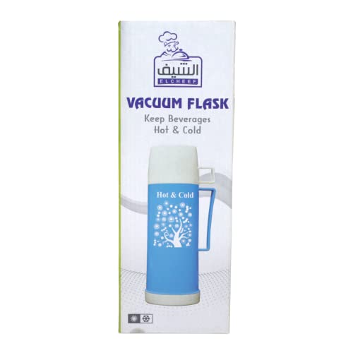 El Cheef - ترمس حراري 2 × 1 (مج وزجاجة) من الشيف للمشروبات الساخنة والباردة - سيمون وابيض، بوليستر