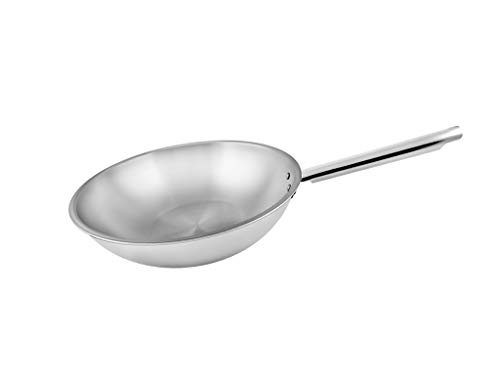 El Dahan - طاسة ووك غويطة بمقبض ستانلس ستيل من الدهان – 22 سم - فضي