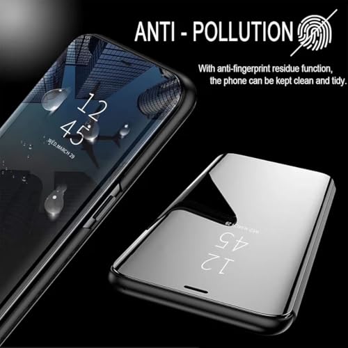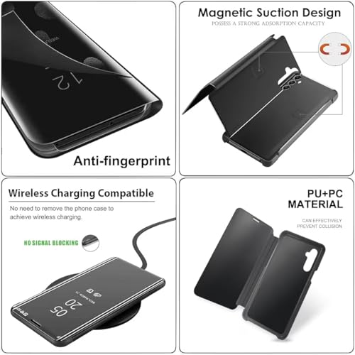 جراب حماية قابل للطي بمرآة عاكسة، بتصميم شفاف، مصنوع من الجلد، مع حامل مدمج، لحماية كاملة لموبايل سامسونج A35 من الجوال، أسود