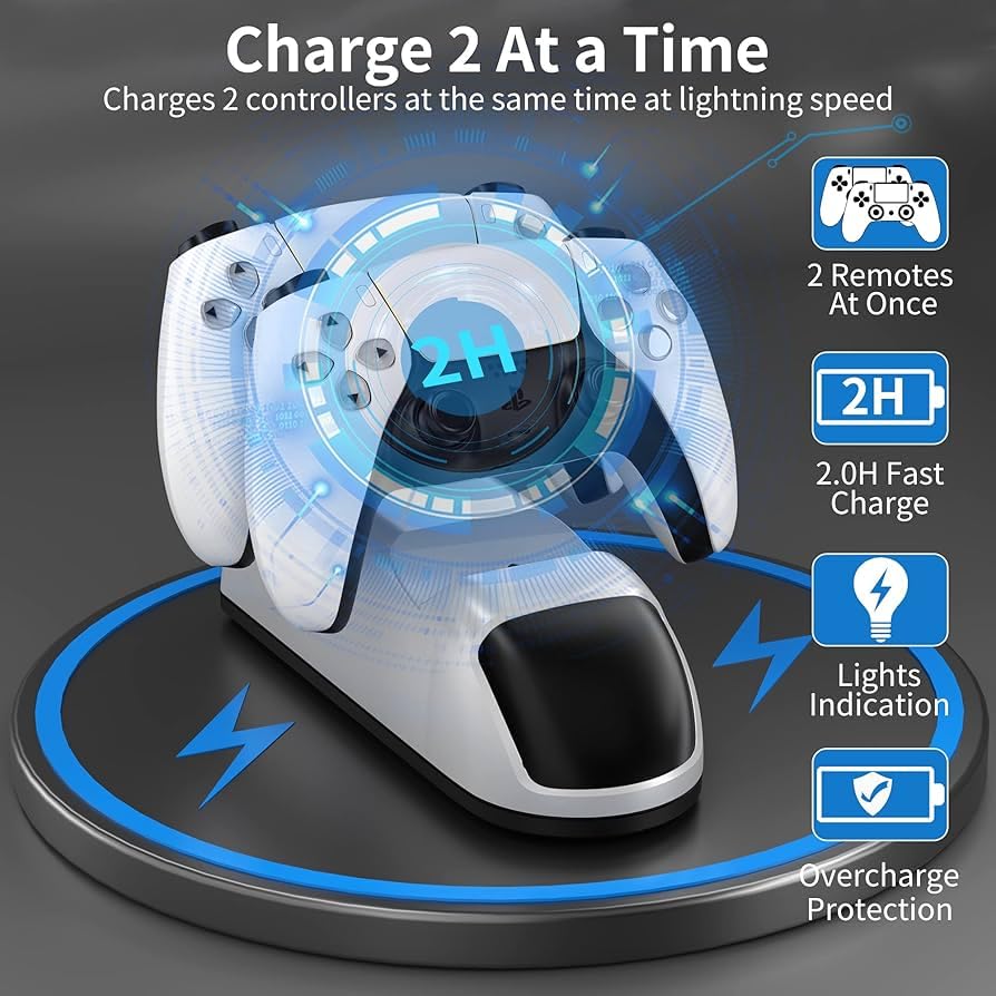 - 🎮【شحن مزدوج لذراعي التحكم في وقتٍ واحد】تم تصميم قاعذة الشحن لجهاز بلاي ستيشن 5 من ليكورلوف لشحن ذراعي التحكم لبلاي ستيشن 5 في نفس الوقت. ملحق ضروري للاعبين بلاي ستيشن 5.