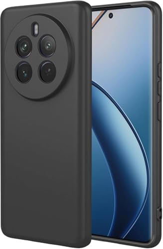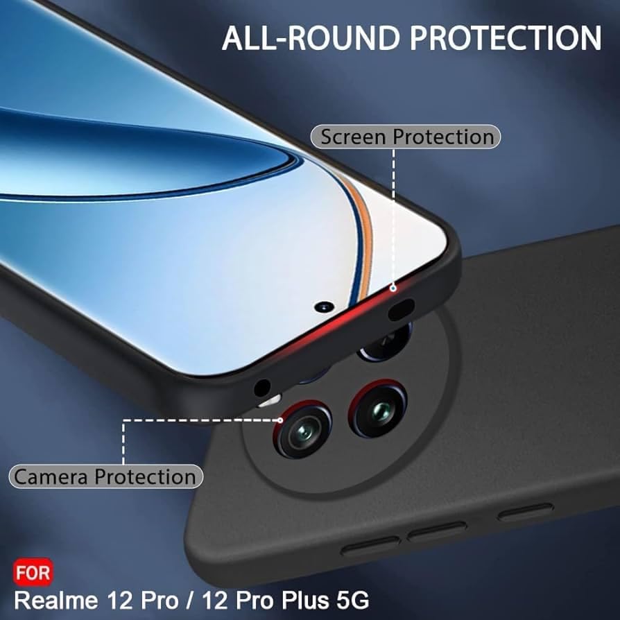 جراب لموبايل ريلمي 12 برو بلس/برو 5G من الجوال - غطاء اسود غير لامع ناعم ومرن من البولي يوريثين الحراري والسيليكون المطاطي، حماية كاملة للكاميرا وممتص للصدمات