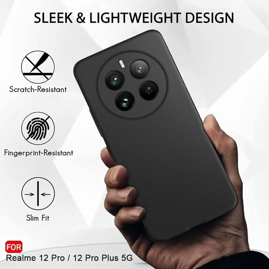 - [حافظة مرنة] جراب خلفي ريلمي 12 برو بلس / ريلمي 12 برو شبكة الجيل الخامس 5G مرن ومصنوع من مادة البولي يوريثين الحراري الناعمة، قبضة جيدة ومادة سوداء غير لامعة